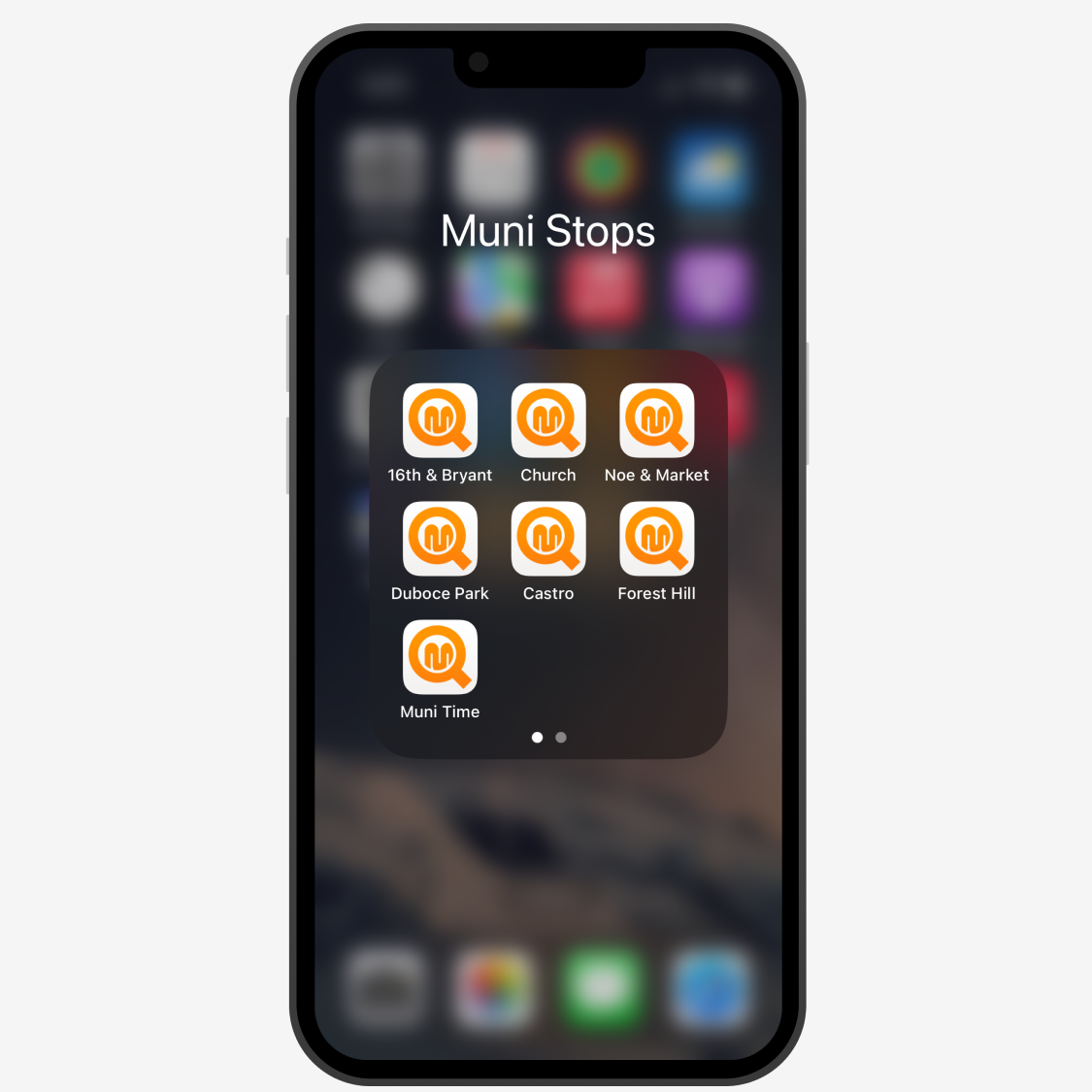 Because Muni Time is a web page bookmark on your home screen, you can add as many Muni stop or station shortcuts as you want.